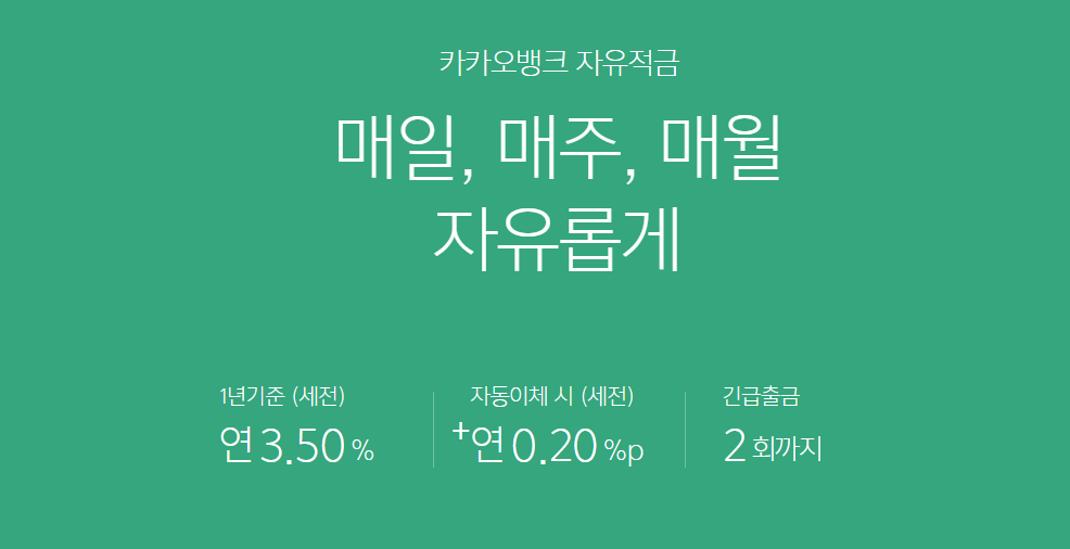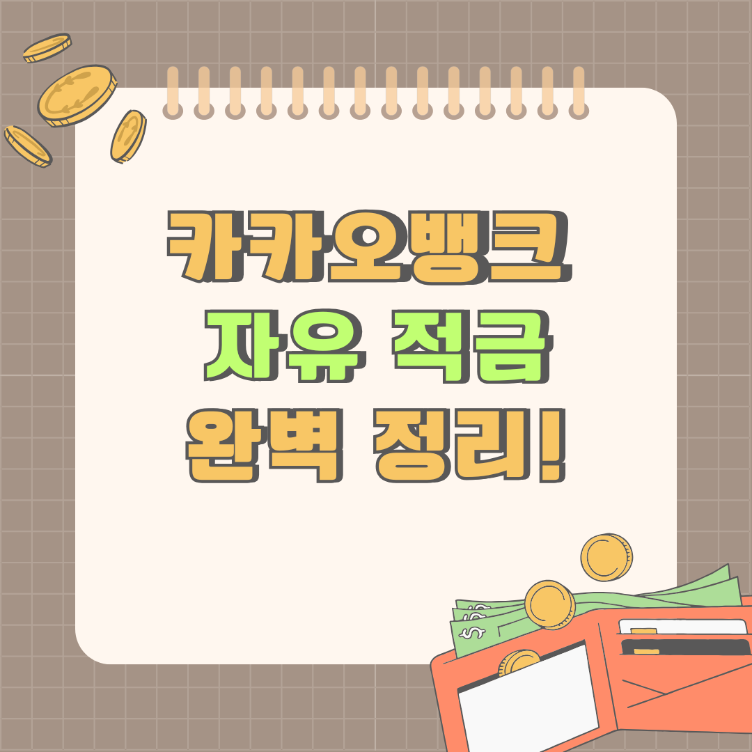저금리와 고금리 시대가 반복되면서 안정적인 저축 수단을 찾고 계신가요? '카카오뱅크 자유적금'은 고정적인 납입 금액이 아닌 자유로운 방식으로 매월 원하는 금액을 저축할 수 있는 상품으로, 유연하게 관리할 수 있어 바쁜 현대인들에게 인기입니다.