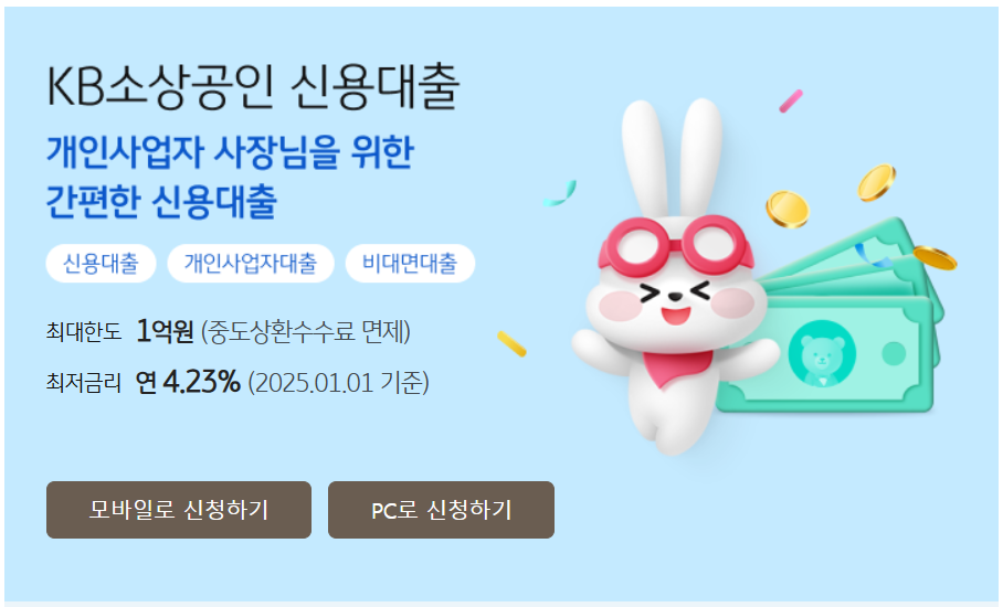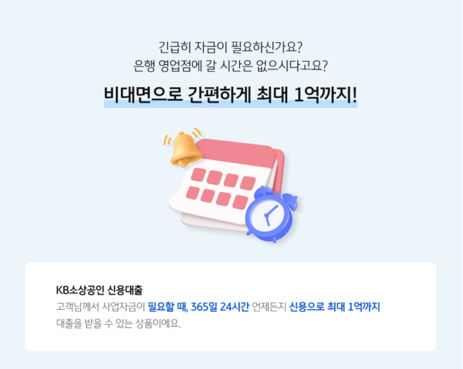 KB국민은행 소상공인 신용대출은 1년 이상 사업을 운영한 개인 사업자를 대상으로 하는 대출상품으로 담보가 필요 없으며, 2금융권보다 저렴한 이율로 대출이 가능한 상품입니다. 오늘 글에서는 KB국민은행 소상공인 대출의 한도 및 금리, 신청방법까지 완벽 정리해 보겠습니다...!!